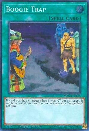 Discard 2 cards, then target 1 Trap in your GY; Set that target. It can be activated this turn. You can only activate 1 "Boogie Trap" per turn.