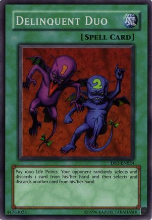 Pay 1000 Life Points. Your opponent randomly selects and discards 1 card from his/her hand and then selects and discards another card from his/her hand.