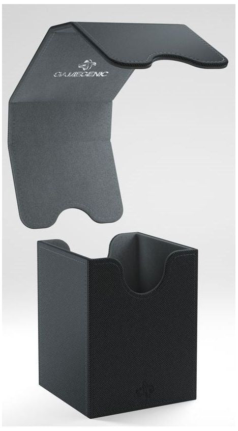 The convertible Squire gives easy access to a double-sleeved 100-card deck. The Convertible line is designed to present cards in new and unique ways. Remove the lid, attach it to the bottom or start tilting your box in a wide variety of ways. This elegant deck box is manufactured with Nexofyber material and protects cards inside with a soft microfiber lining. Powerful magnets keep it safely closed.