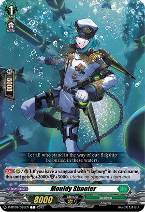 [CONT](RC)/(GC):If you have a vanguard with "Flagburg" in its card name, this unit gets [Power] +2000/[Shield] +5000. (Active on opponent's turn too)