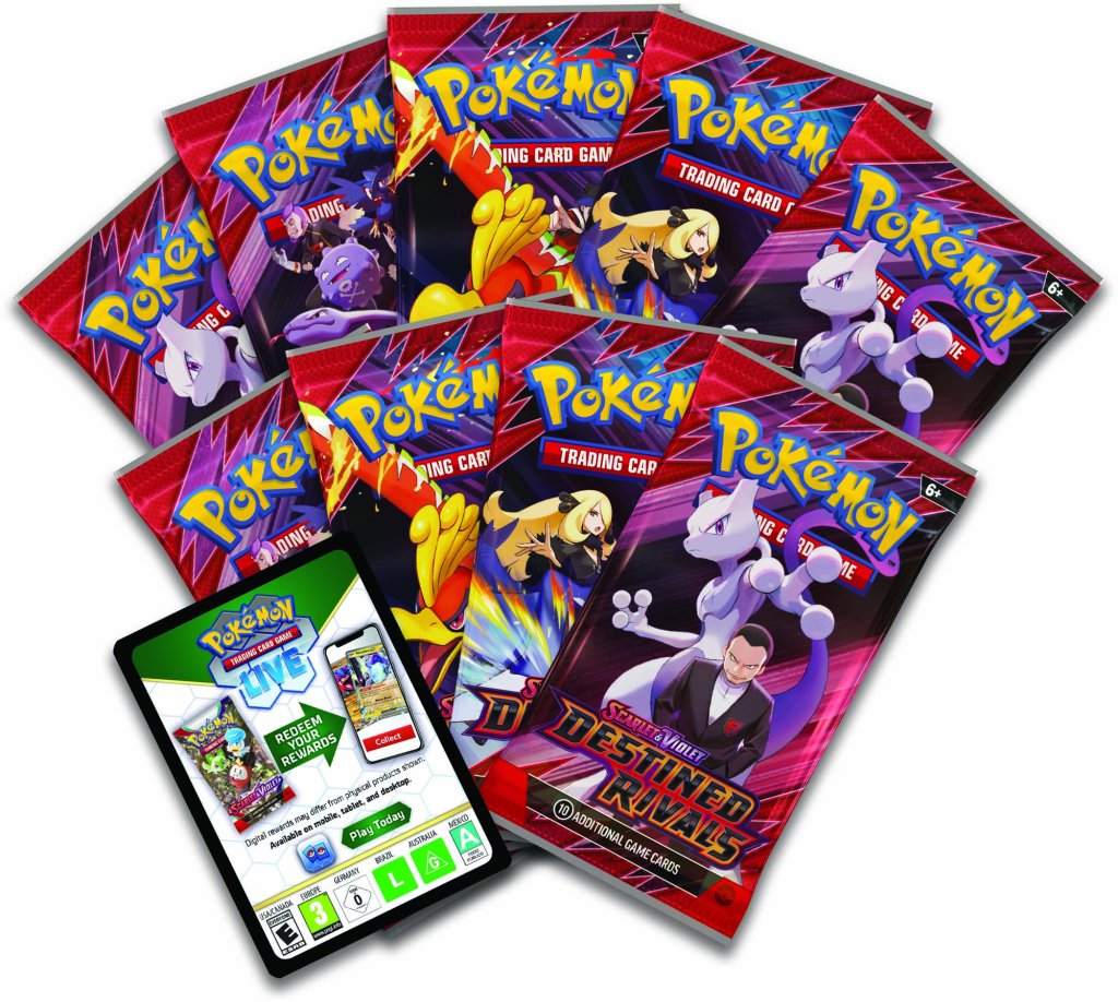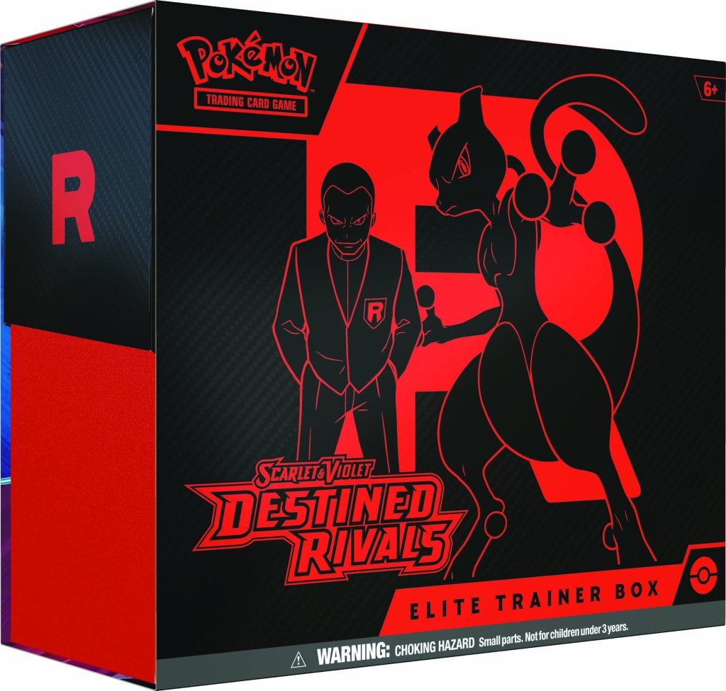 Pokémon Trainers, be on high alert! The nefarious Team Rocket is setting its latest plan into motion, and heroic Trainers are racing to stop it. Join forces with the likes of Cynthia and Garchomp ex, Ethan and Ho-Oh ex, or Arven and Mabosstiff ex… Or reconsider your loyalties and fight alongside Team Rocket’s Pokémon like Mewtwo ex—under the command of Giovanni! Choose a side, assemble your allies, and battle boldly in the Pokémon TCG: Scarlet & Violet—Destined Rivals expansion!