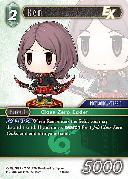 EX BURST When Rem enters the field, you may discard 1 card. If you do so, search for 1 Job Class Zero Cadet and add it to your hand.