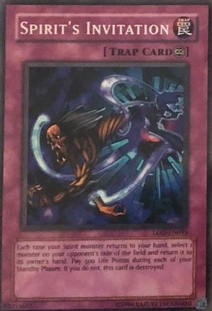 Each time your Spirit monster returns to your hand, select 1 monster on your opponent''s side of the field and return it to its owner''s hand. Pay 500 Life Points during each of your Standby Phases. If you cannot, this card is destroyed.