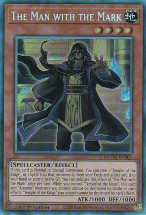 If this card is Normal or Special Summoned: You can take 1 "Temple of the Kings", or 1 Spell/Trap that mentions it, from your Deck and either add it to your hand or send it to the GY. You can only use this effect of "The Man with the Mark" once per turn. While you control "Temple of the Kings", this card and "Apophis" monsters you control cannot be destroyed by battle or card effects. "Temple of the Kings" you control cannot be destroyed by card effects.