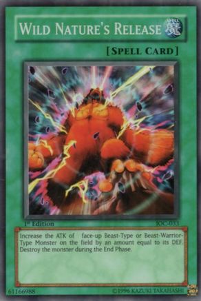 Increase the ATK of face-up Beast-Type or Beast-Warrior-Type Monster on the field by an amount equal to its DEF. Destroy the monster during the End Phase.
