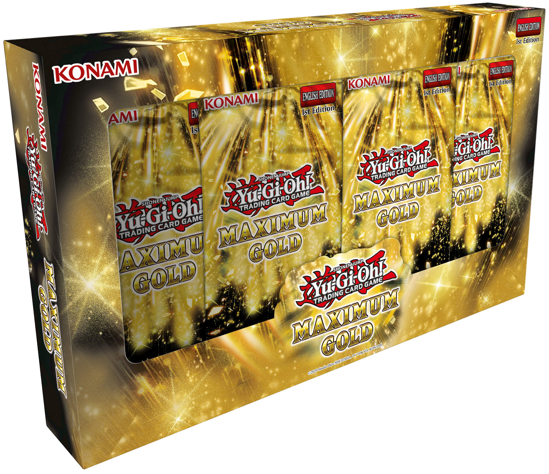 Each box will include 4 Maximum Gold packs with 7 cards each: 2 Premium Gold Rares and 5 gold-letter Rares.